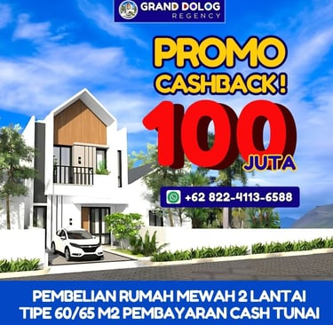 Dapatkan kesempatan luar biasa dengan promo cashback hingga 100 juta di Grand Dolog Regency! Promo ini memberikan Anda kesempatan untuk memiliki rumah impian dengan lebih mudah dan terjangkau. Dengan