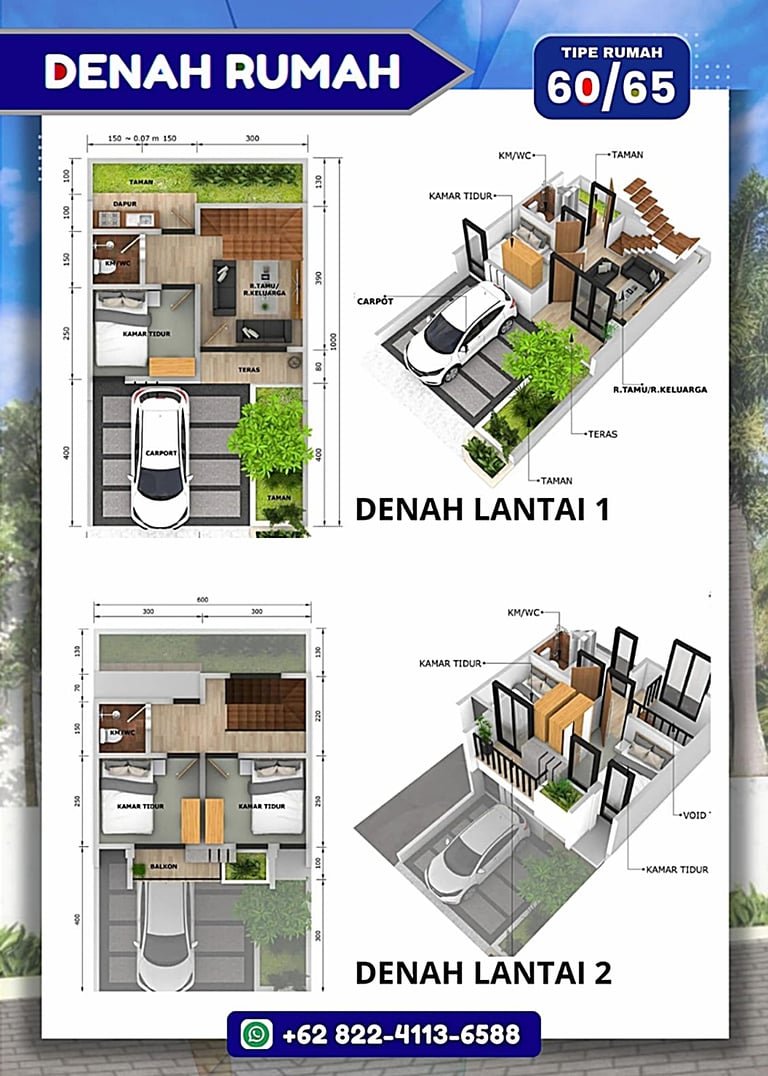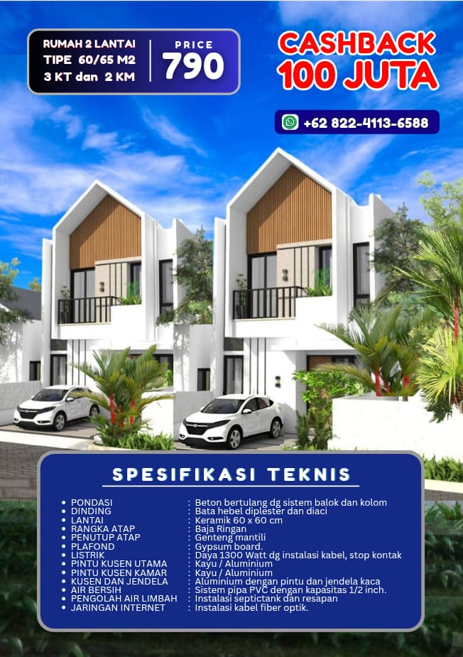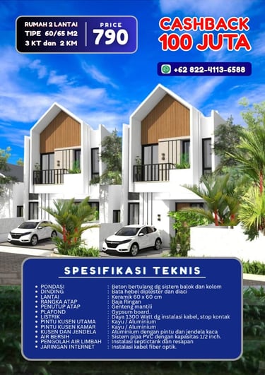Rumah 2 Lantai Type 60/65 m2,
